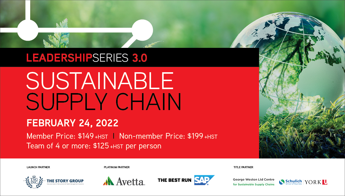 The Leadership Series 3.0: Sustainable Supply Chain session, which is to be held on February 24, 2022 via Zoom already has a stellar line-up of speakers from leading organizations such as The Kraft Heinz Company, OPG, Universal Health Network, LUSH, Mattel, BC Hydro, Telus and more. With a compelling agenda and powerhouse speakers, we are already at 400+ registrations with only 3 more weeks to go. We encourage you to attend with your teams, save up to 37% and maximize your learning. Learn more.