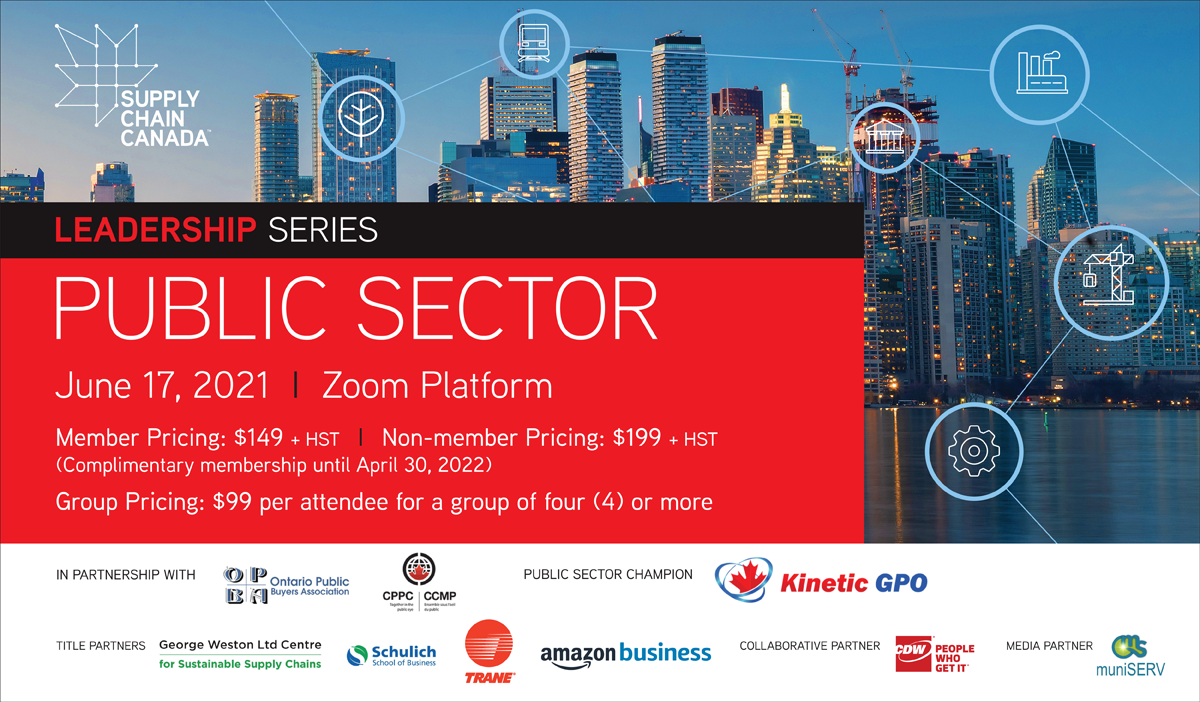 Supply chain although a core function of the public sector organizations, have been traditionally treated as a back-office function. However the compounded impacts of COVID-19, subsequent responsibility of public sector towards the citizens’ health and sustainability, made public sector organizations recognize that success links inextricably to supply chain performance. That is why we once again collaborated with Supply Chain Canada, Ontario Institute to deliver the Leadership Series: Public Sector on June 17, 2021 in partnership with OPBA and CPPC for the very first time.