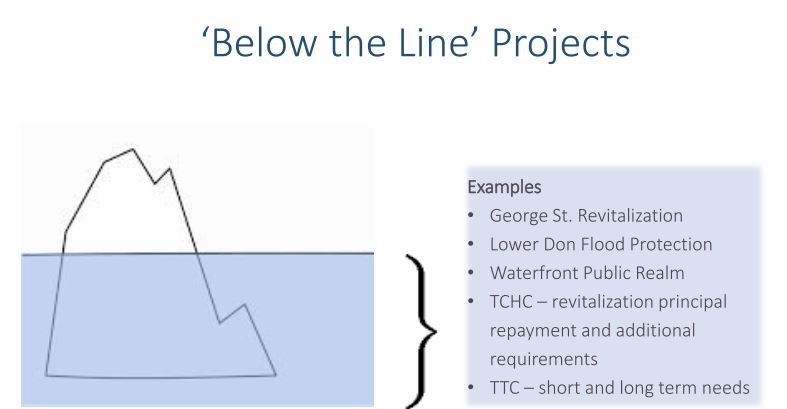 Senior Management Team, meet the iceberg. It’s a graphic metaphor one Canadian city manager used to describe the growing number of projects council approved, announced without a funding plan, (also known as projects that were ‘below the [funding] line’) and deferred. The image highlights which projects the council-directed tax increase pushes forward to future years and the risk that political talk does not match budget walk.